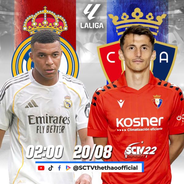 (Real Madrid – Osasuna, 02h00 ngày 20/08, trực tiếp trên SCTV22)