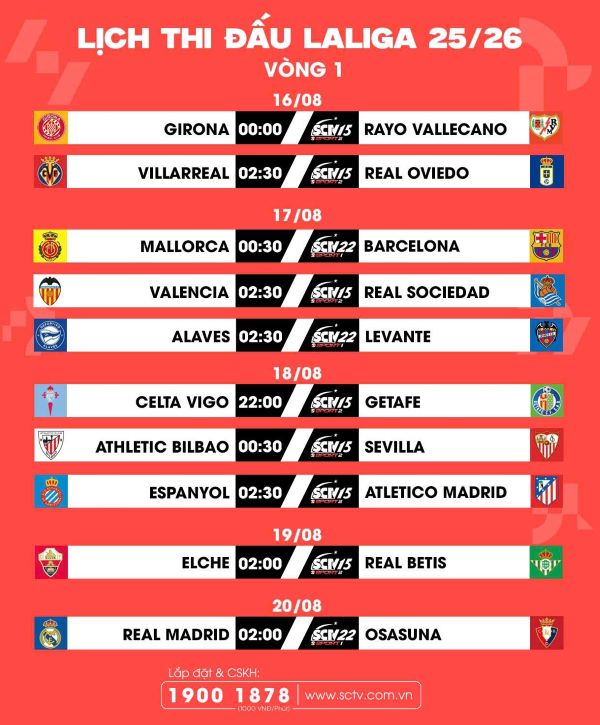 Không thể nhắc đến LALIGA EA Sports mà thiếu cái tên SCTV Thể Thao – nơi đã gắn bó với giải VĐQG Tây Ban Nha suốt nhiều năm qua. Bắt đầu từ giữa tháng 8, khán giả sẽ được theo dõi trực tiếp loạt trận mở màn cực kỳ hấp dẫn của mùa giải 2025/26 trên các kênh SCTV15, SCTV17 và SCTV22.