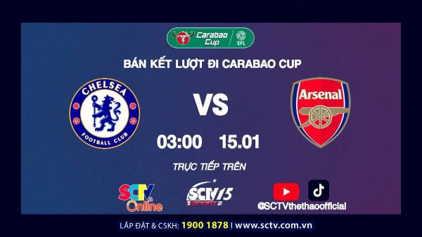 Chelsea – Arsenal; 03h00 ngày 15/01; trực tiếp trên SCTV15, YouTube & TikTok SCTV Thể Thao Official